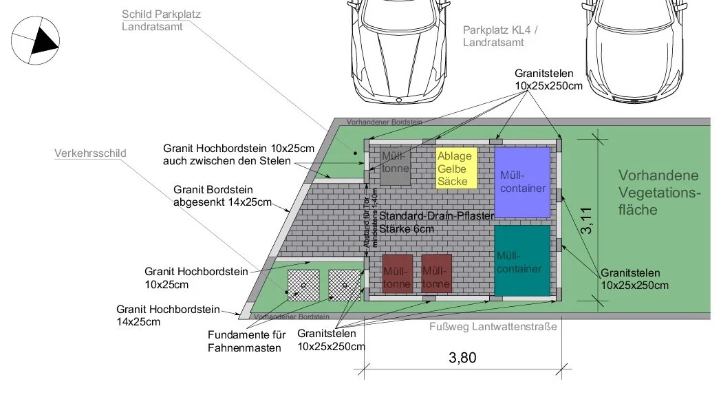 Projekt Müllplatz KL4Lantwattenstraße 4, VS-Villingen Entwurfsplan 3D Visualisierung Bauphase Der fertige Müllplatz (Verkleidung fehlt noch)